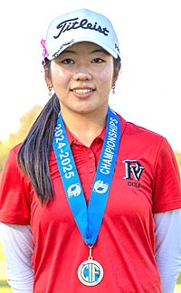 The standout from Palos Verdes High sank a 20-foot birdie putt on the second playoff hole to win the 2024 CIF State Girls Golf Championship at San Gabriel Country Club, finishing with five birdies and just two bogeys in regulation. Her birdie came on the par-4, 368-yard 18th hole after a tightly contested playoff against the defending champion, making her the first Palos Verdes golfer in school history to win the state title and the first freshman in California to do so since Zoe Campos of West Ranch in 2017, who has since turned professional after competing at UCLA. Campos also was the State Girls Freshman Athlete of the Year for the 2017-18 school year.