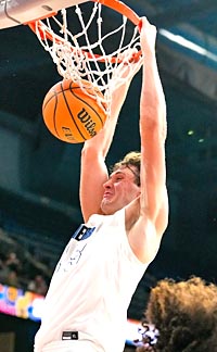 Sierra Canyon’s Brannon Martinsen completes a dunk during CIFSS Open Division final vs Harvard-Westlake. Photo: Scott Kurtz.