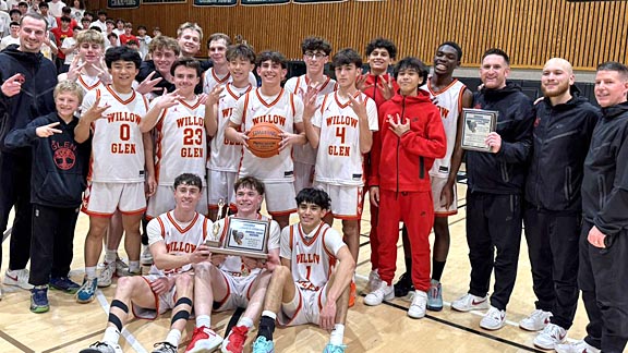The Willow Glen of San Jose boys basketball team, coached by Patrick Judge, won the school’s first CCS title in 57 years. Photo: @cifccs / X.com.